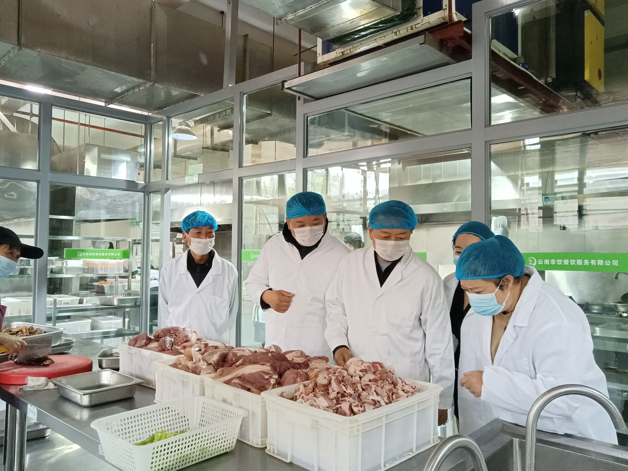 为深入贯彻习近平总书记关于食品安全工作的重要指示批示精神,认真落实“四个最严”要求,安管办持续开展食品安全专项检查,为巩固10月21日的检查成效,10月30日上午,安宁校区管理办公室主任施航天、副主任马刚及餐饮管理科相关人员到学生食堂检查食品安全工作。