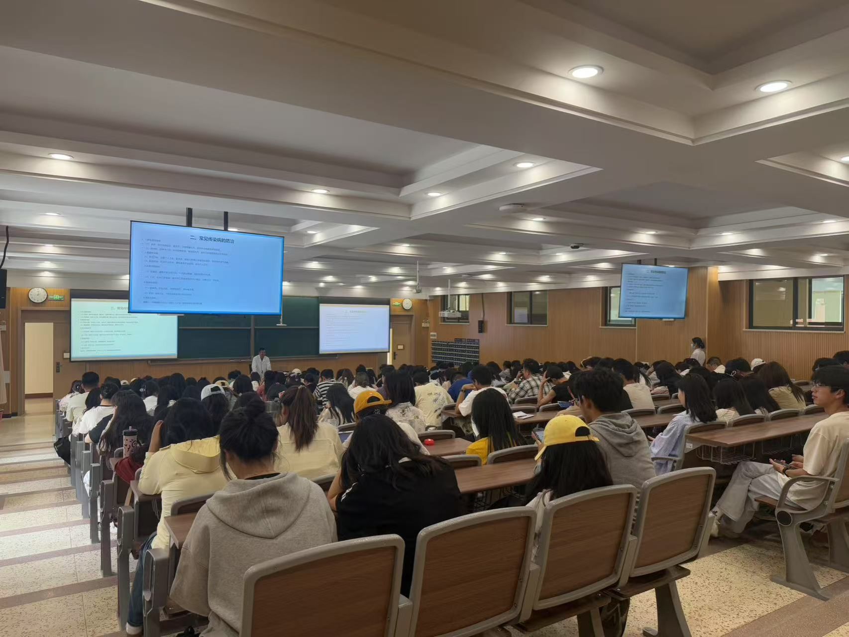 讲座中,医务室负责人李祖兵详细介绍了多种春季常见传染病。比如,流感,由流感病毒引发,通过飞沫传播,症状比普通感冒严重;麻疹,通过飞沫、接触患者分泌物或污染物传播,传染性极强,并发症严重;水痘、手足口病、流行性腮腺炎、诺如病毒感染性腹泻和肺结核等也都各有特点与传播途径。