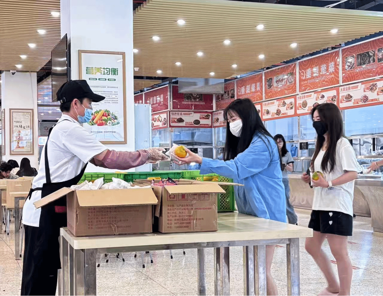 活动当天,安宁校区各食堂早早摆放好提前购买的月饼及水果,工作人员身着整洁工装,热情地为每一位就餐师生递上月饼和水果。拿到月饼的同学们纷纷表示,“食堂的月饼特别贴心,虽然不能回家过节,但吃到学校送的月饼,感觉特别温暖”;教师们也为活动点赞,“小小的月饼看似普通,却满含学校对师生的关怀,这种‘接地气’的温暖,比任何祝福都更让人感动。”