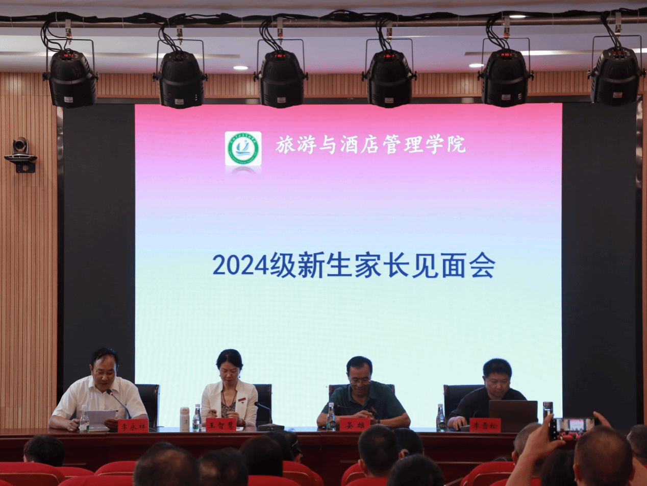为促进新生家长对学校和学院的深入了解,强化家校共育理念,实现家校良性互动,8月24日下午,旅游与酒店管理学院在齐远楼报告厅举行2024级新生家长见面会。学院院长晏雄,副院长李雪松、王智慧,学院全体辅导员及50余名新生家长参加座谈,会议由学院党委副书记李永祥主持。