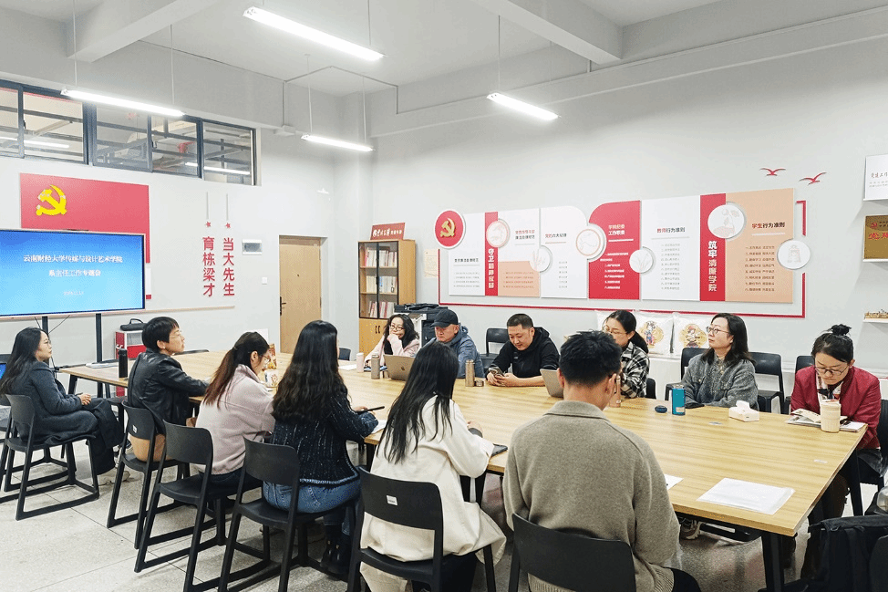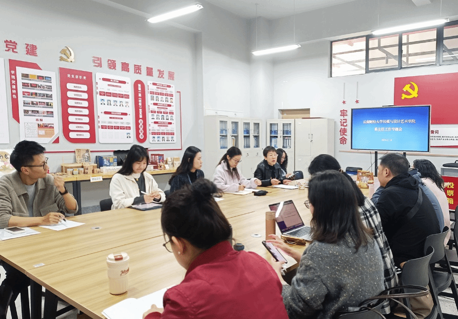 袁洪同与会老师共同商议了明年5月份毕业设计展的内容、形式及时间安排。她强调,毕业设计展是学院教育教学工作的重要环节,是展示学院人才培养质量的重要窗口。毕业设计作品不仅体现毕业生的专业知识和技能,更展示了学生关注社会、民生和未来的责任感和使命感,学院要进一步统筹利用好产业学院、与头部媒体合作机会,以及云南文学艺术馆等线下展览场地,突出学院办学特色,筹划好2025届毕业设计展。