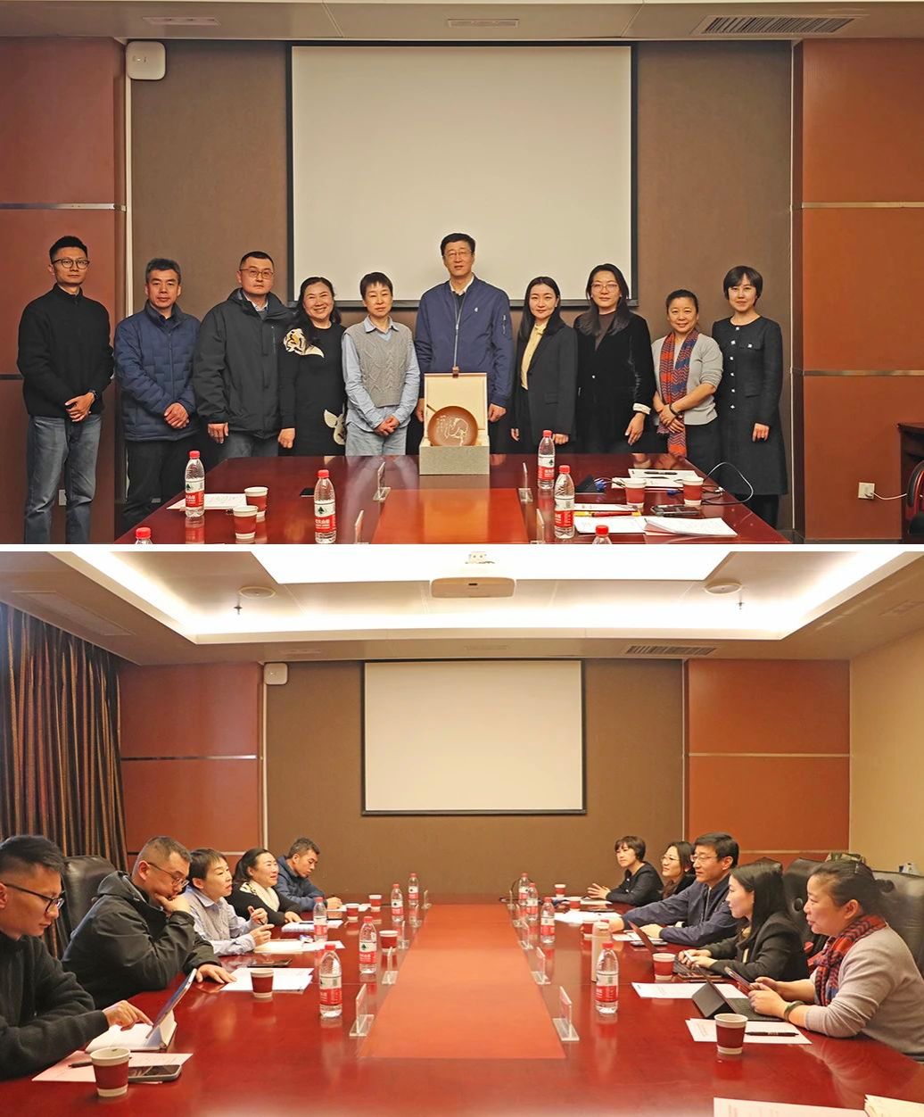 在清华大学艺术博物馆,学院一行同清华大学艺术博物馆典藏部潘旭辉主任、桂立新老师进行交流学习,双方就艺术博物馆建设、展览筹备、人才培养、资源共享、合作交流平台的搭建等方面进行了深入探讨。潘旭辉介绍了展陈策划与设计、藏品管理等方面的经验,为学院美术馆的建设具有重要的参考和启示意义。