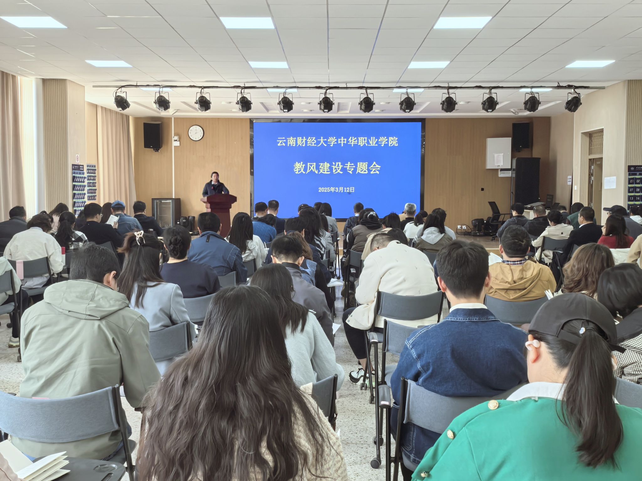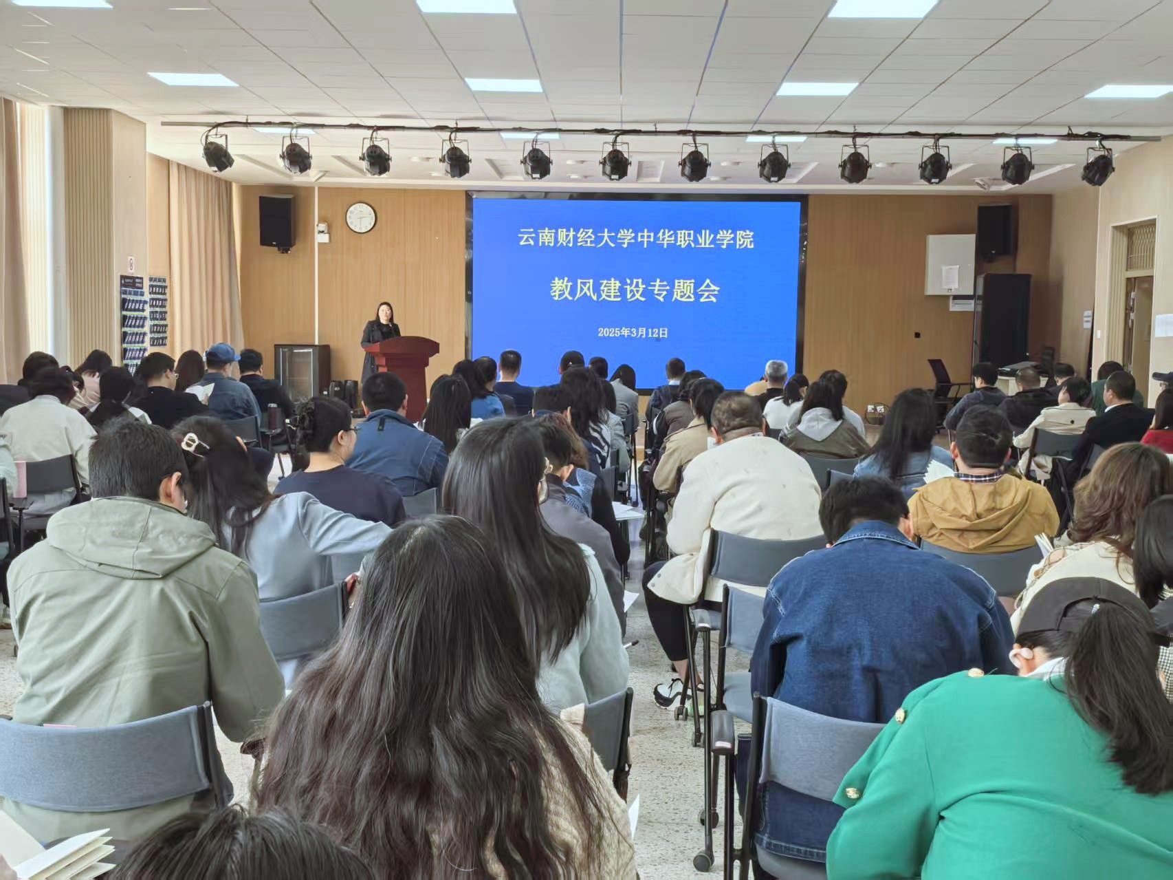 为持续提升课堂教学质量,深化“三风”建设,中华职业学院于3月12日下午在修远楼204会议室召开教风建设专题会。学院全体教职工参会。