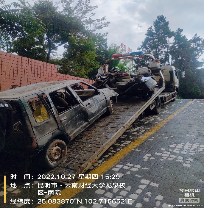 10月初,保卫处深入摸排“僵尸车”停放地点,对长期占道的“僵尸车”通过联系车主、张贴告知书等形式,通知车主尽快自行处理。经过交警部门的沟通协调,部分车主自行将机动车驶离校园,其余无法联系的“僵尸车”已由交警部门统一处理。在本次行动中共清理机动车“僵尸车”29辆。