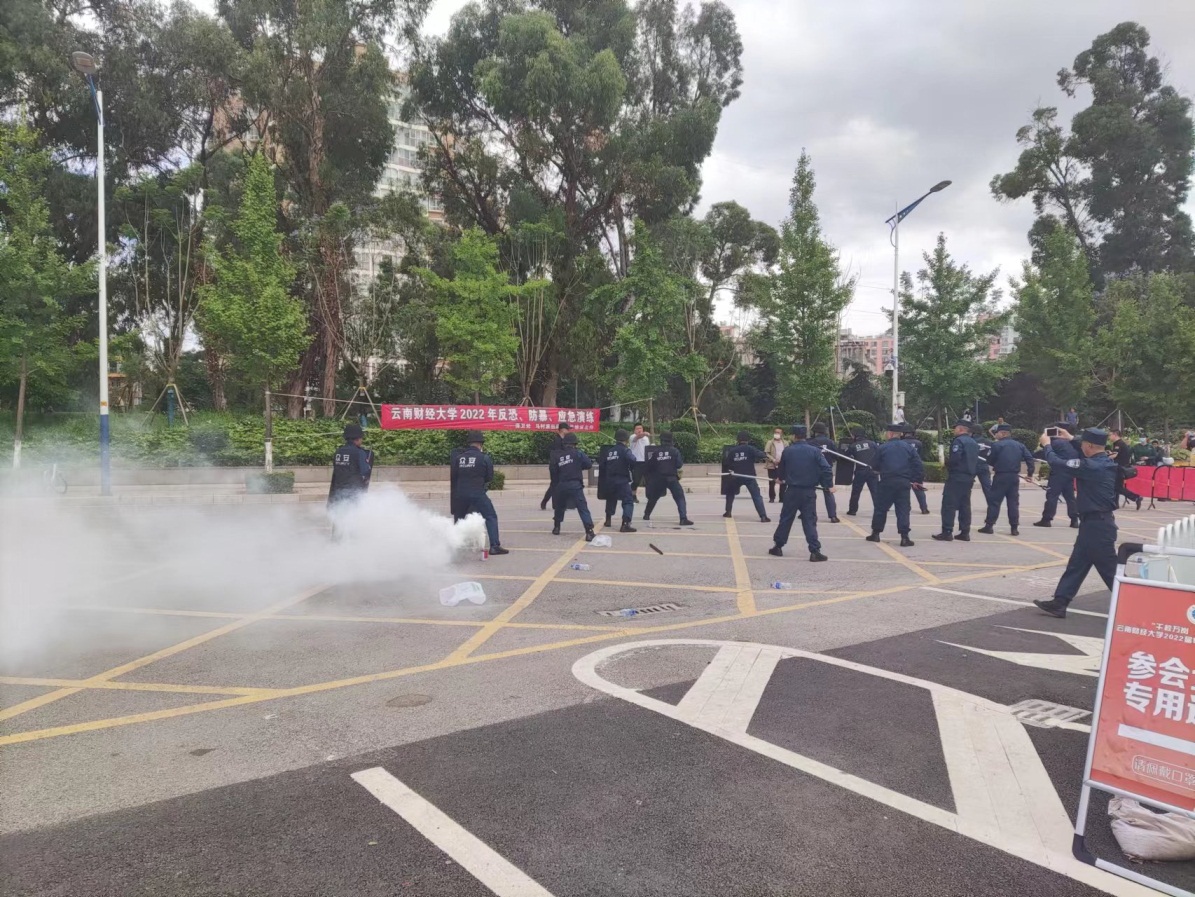 为有力有效推进安全生产宣传月相关工作,进一步增强师生面临恐怖和暴力威胁时紧急避险、自救互救等方面的防范意识,提高学校安保队伍履职综合能力,切实筑牢校园安全屏障,6月17日下午,学校在新阳广场开展2022年度反恐防暴应急演练。学校副校长彭强、胡海彦出席活动。