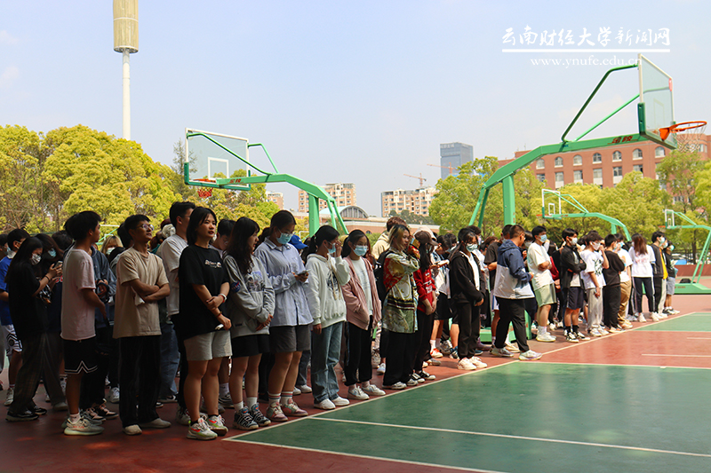 下午15:00,随着一阵尖锐的警报声响起,在教室观看警示教育片的同学们第一时间跑出教室,在引导人员的组织下捂着鼻子、拱着腰,紧张有序地沿着消防通道迅速转移到学校致远篮球场的安全地点,整个“逃生”过程井然有序且迅速。