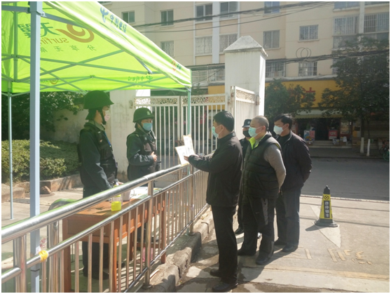 全洪涛一行仔细查看校园各岗位工作人员在岗履职情况,在学校南院东大门、西大门、北门,高教校区门岗,北院西门和南门各处仔细检查防控物资配备和使用情况,询问门岗管理人员工作流程执行情况并查看了门岗出入管理登记台账。全洪涛叮嘱门岗管理人员要做好自我防护,把保障校园的健康安全放在第一位,切实把好学校第一道关口,严格执行日常门岗管控六项工作流程,一是检查口罩佩戴情况,二是查验身份,三是检测体温,四是扫描二维码,五是信息登记,六是对入校车辆和物品的消毒,认真贯彻落实好学校疫情防控期间的门岗防控工作要求。