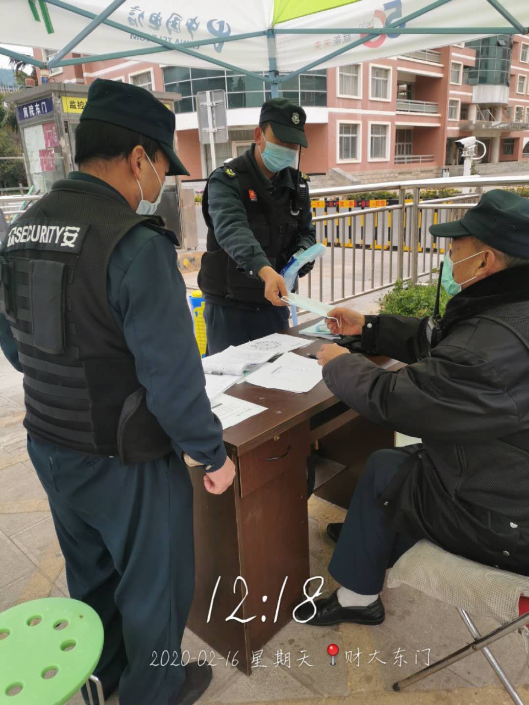 安排管理人员每日早中晚对三次对执勤人员进行体温检测,对门岗执勤人员的双手、笔、登记本进行酒精消毒,坚决杜绝保安队员带病上岗。利用交班前的工作会对保安人员进行心理疏导,缓解因长期高负荷、高压力工作带来的心理压力。在全处职工的共同努力下,校内教职工积极配合门岗查测登记工作,有教职工看到门岗执勤人员工作辛苦,还主动捐赠了口罩、酒精等防疫物资。