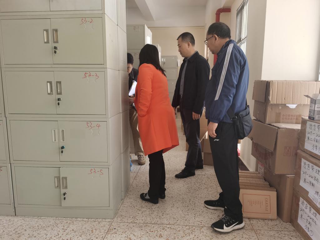 10月31日,副校长余怒涛到安宁校区调研并指导档案馆工作,档案馆馆长吴红刚和馆属部门负责人参加调研。 在档案馆调研期间,余怒涛一行实地查看了正在新建中的安宁校区档案馆库房,到中华职业学院检查了试卷库房建设情况。