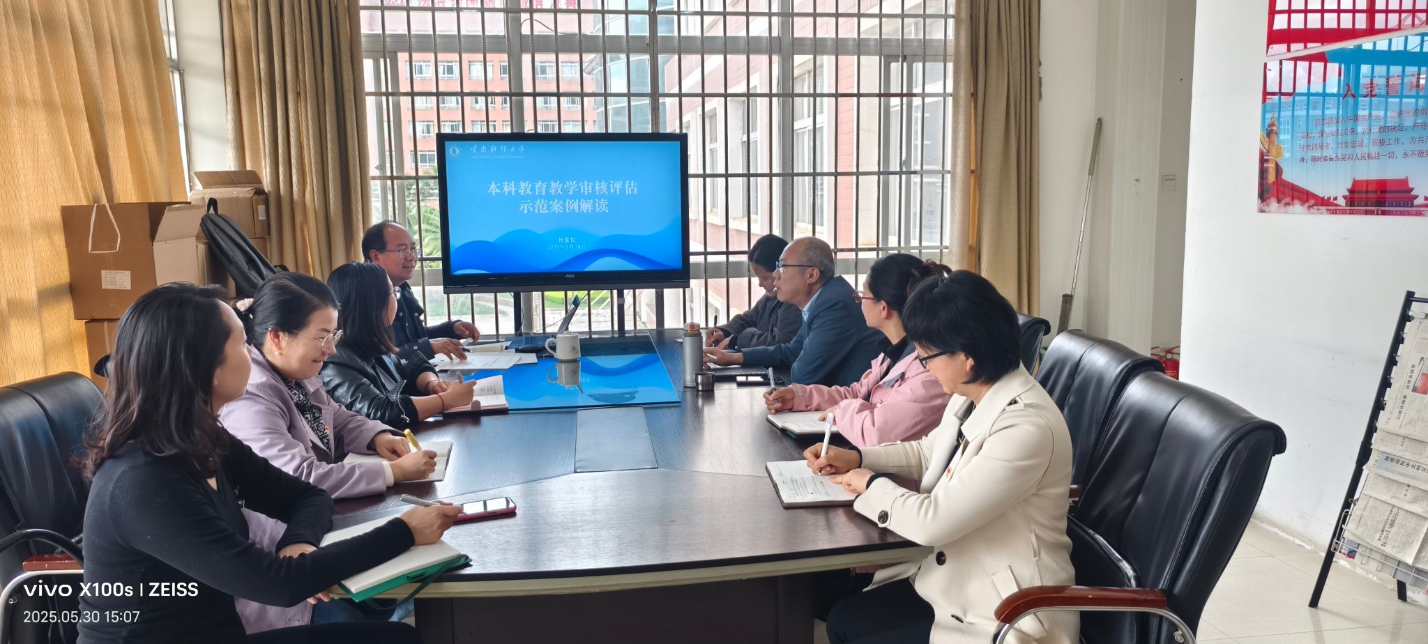 会上,馆长吴红刚从案例简介、主要解决的具体教学问题、解决方法、案例创新点、改革成效及推广效果等方面带领大家学习学校本科教育教学审核评估的两个示范案例。
