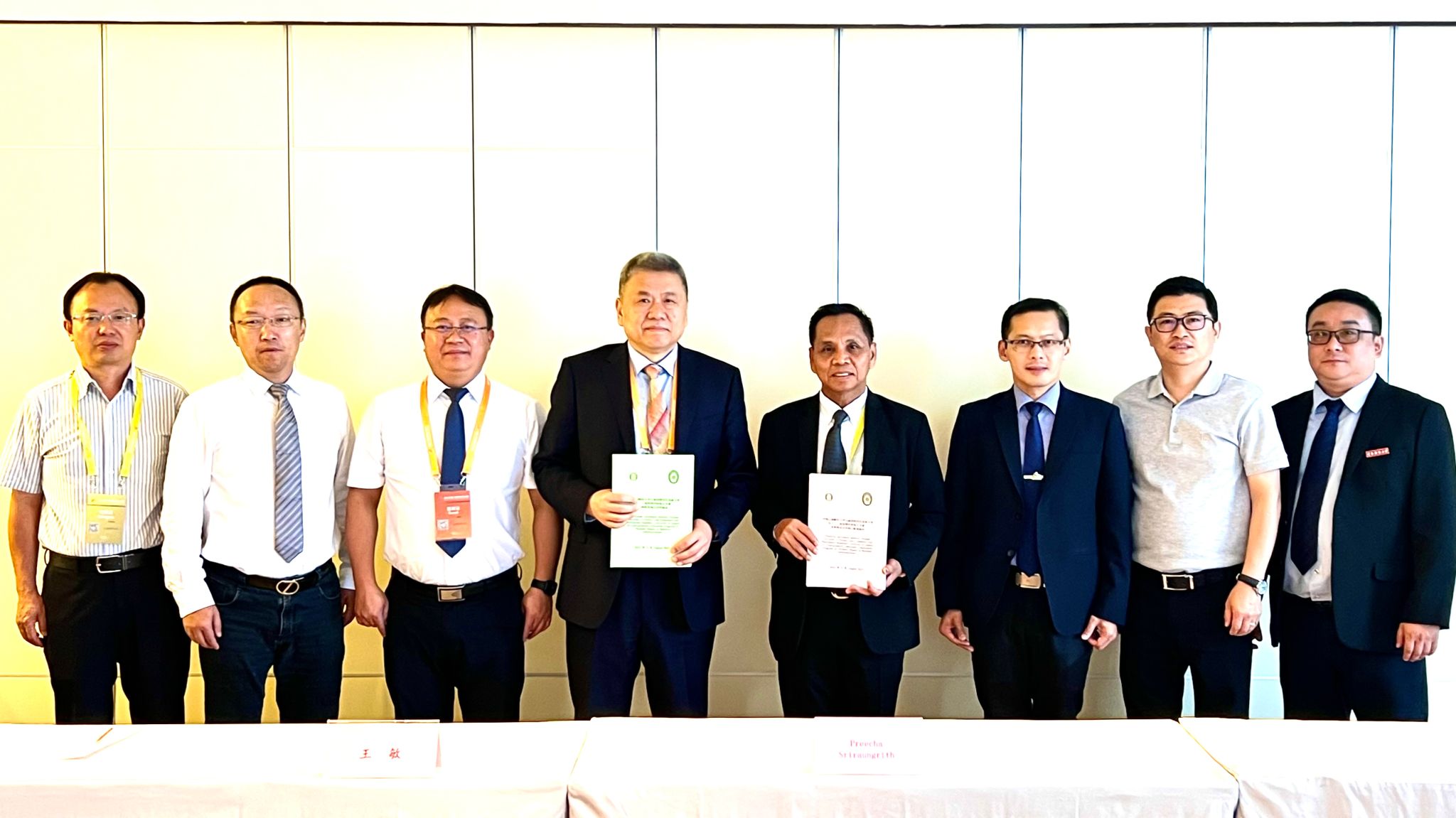 活动期间,王敏与泰国碧差汶皇家大学校长Preecha Sriruangrit一行还举行了会谈,签署了工商管理类本科双学位境外办学项目合作协议。王敏表示,学校高度重视与泰国碧差汶皇家大学的合作。对今年5月份以来迅速取得的实质性工作进展表示赞赏,学校在课程教学的调研筹备、管理服务的融合优化以及潜在挑战的应对方面均做好了充分准备。此次两校项目合作协议的正式签署,既是精诚合作的里程碑,又是境外办学项目开启的新篇章,更是双方携手并进,优势互补,为泰国学生提供高质量国际化教育资源的模式创新,希望尽快看到项目在泰国落地实施。Preecha Sriruangrit表示,通过数次深入而友好的会谈与交流,双方在本科层次的项目合作上达成了积极成果,不仅彰显了双方对于教育合作的共同愿景与坚定决心,也为后续的深化合作奠定了坚实的基础。他强调,将进一步细化合作方案,明确合作细节,以确保项目高质量、高效率地开展。