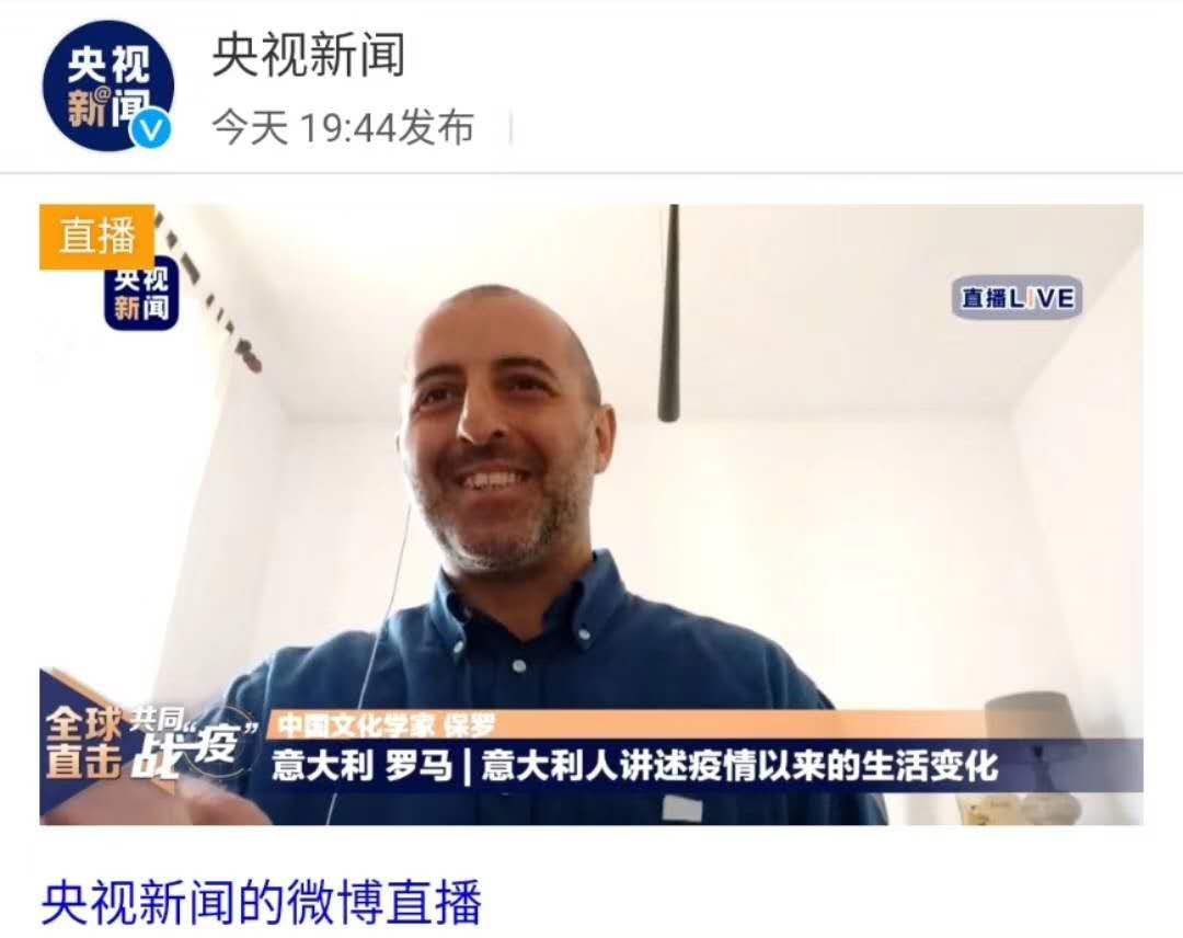 当中国国家卫健委和中国红十字会共同组建的抗疫医疗专家组一行9人携31吨医疗物资抵达意大利罗马,驰援意大利抗击新冠肺炎疫情时,WilliamHill官网意大利籍外教 PAOLO CASTAGNA在其个人社交媒体上对中国在危难时刻伸出援手表达了由衷的感谢,获得数十万网友的点赞。他说,正因为中国人民团结一心,众志成城,所以及时有效的控制住了疫情。3月24日晚,受央视新闻邀请,PAOLO CASTAGNA参与了央视新闻“全球抗疫第一线”的直播,他讲述了意大利疫情以来的生活变化,表示会号召大家重视疫情、学习并推广中国的防疫经验。他会将来自中国的祝福与嘱托带到意大利,搭建起中意友谊的桥梁。