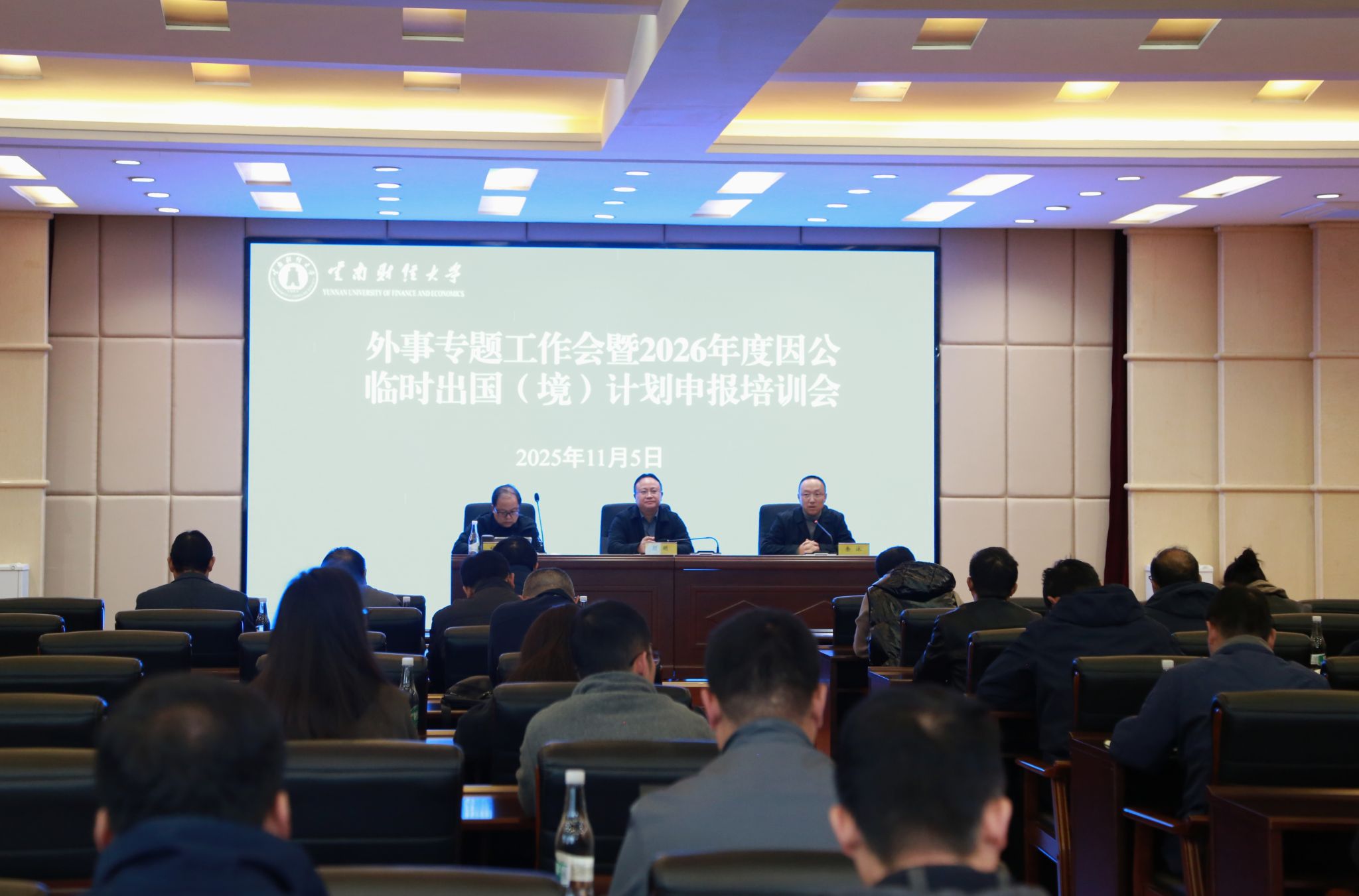 财务处副处长杜福昌就因公临时出国(境)财务预算、用汇及报销等相关工作进行了讲解。对外合作交流处因公临时出国(境)科科长杜汶胶就2026年因公临时出国(境)计划申报进行了业务培训。