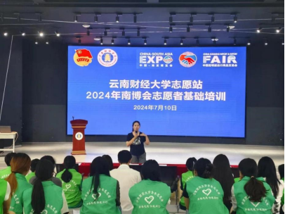 From July 23 to 28, the 8th China-South Asia Expo and the 28th China Kunming Import and Export Fair were held at the Kunming Dianchi Convention and Exhibition Center, co-hosted by the Ministry of Commerce and the People’s Government of Yunnan Province. A total of 81 young volunteers from YUFE, selected through a rigorous process and comprehensive training, were on site to provide seven days of volunteer services for the expo. They embodied the spirit of dedication, friendship, mutual assistance, and progress, effectively telling the stories of China and Yunnan while promoting Chinese culture to the world, showcasing the vibrant spirit of Yunnan University of Finance and Economics’ youth.