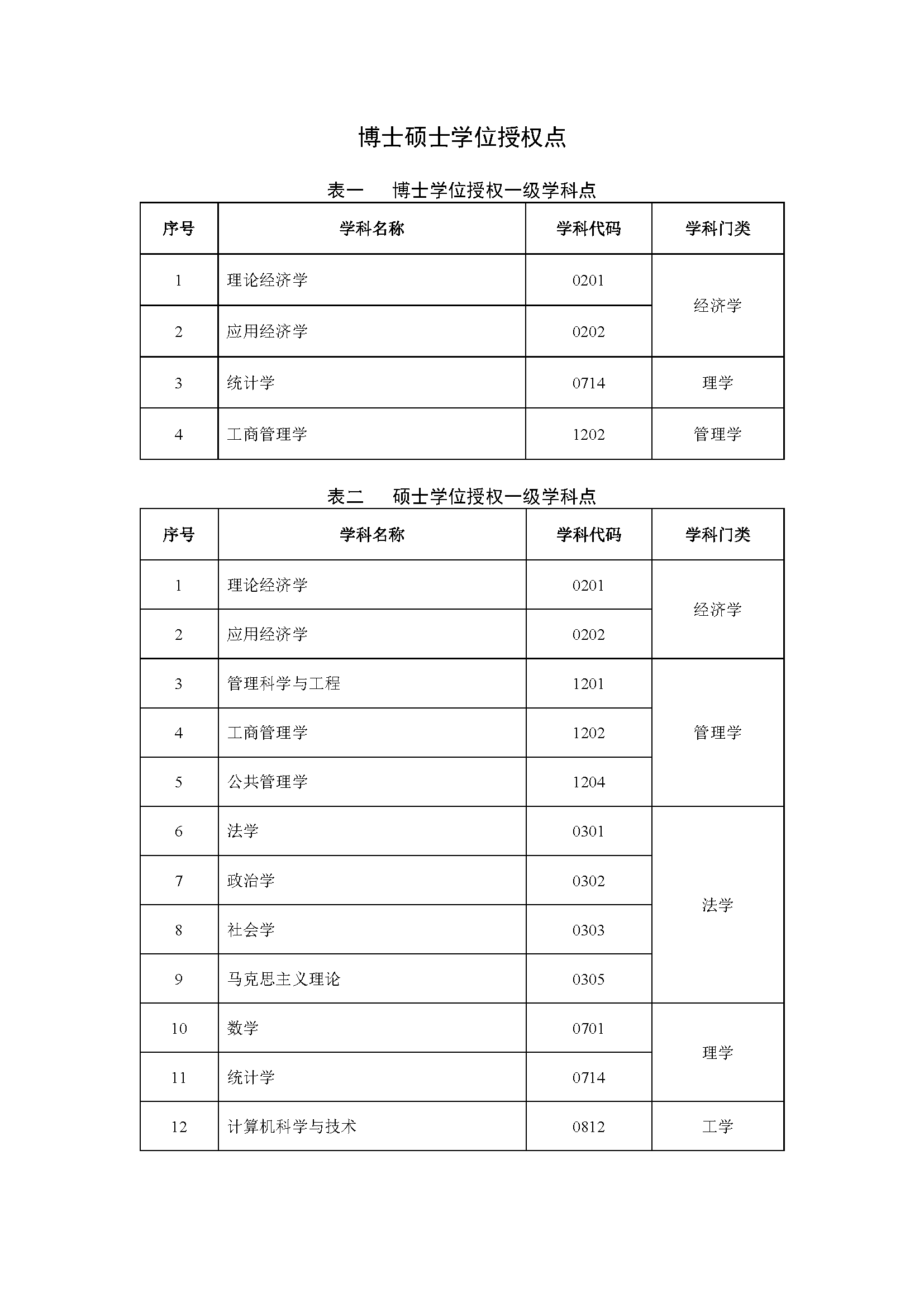 博士硕士学位授权点一览表