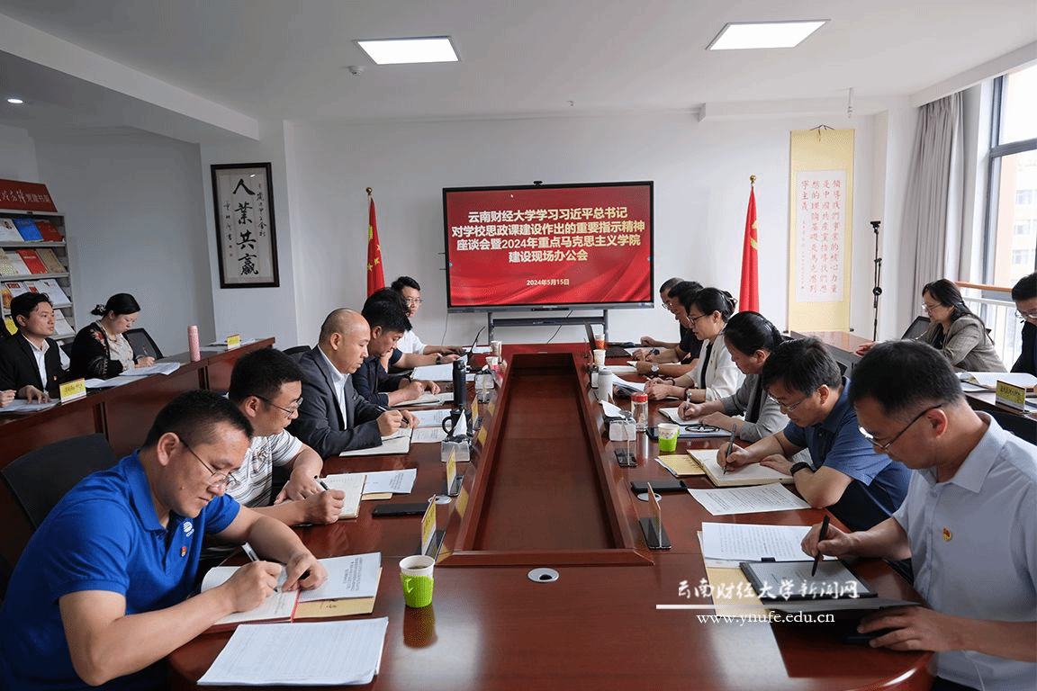 办公室、组织部、宣传部、教师工作部、学生工作部、教务处、研究生院、校团委、财大附中和云才文翰学校负责人,马克思主义学院全体班子成员、思政课教师和青年学生代表参加会议。