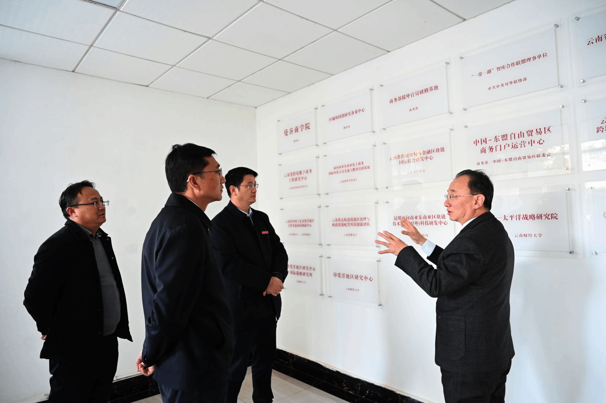 1月23日下午,云南省委教育工委、云南省商务厅相关领导到学校调研助力云南面向南亚东南亚辐射中心建设和对外援助相关工作情况,学校党委书记陈红,党委委员、副校长李正彪和颜明陪同并介绍学校相关工作及成效。