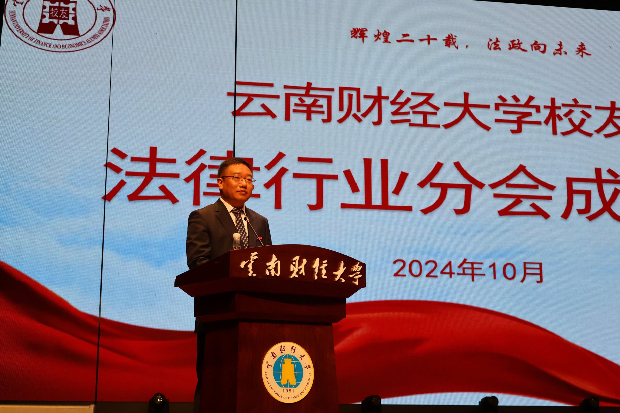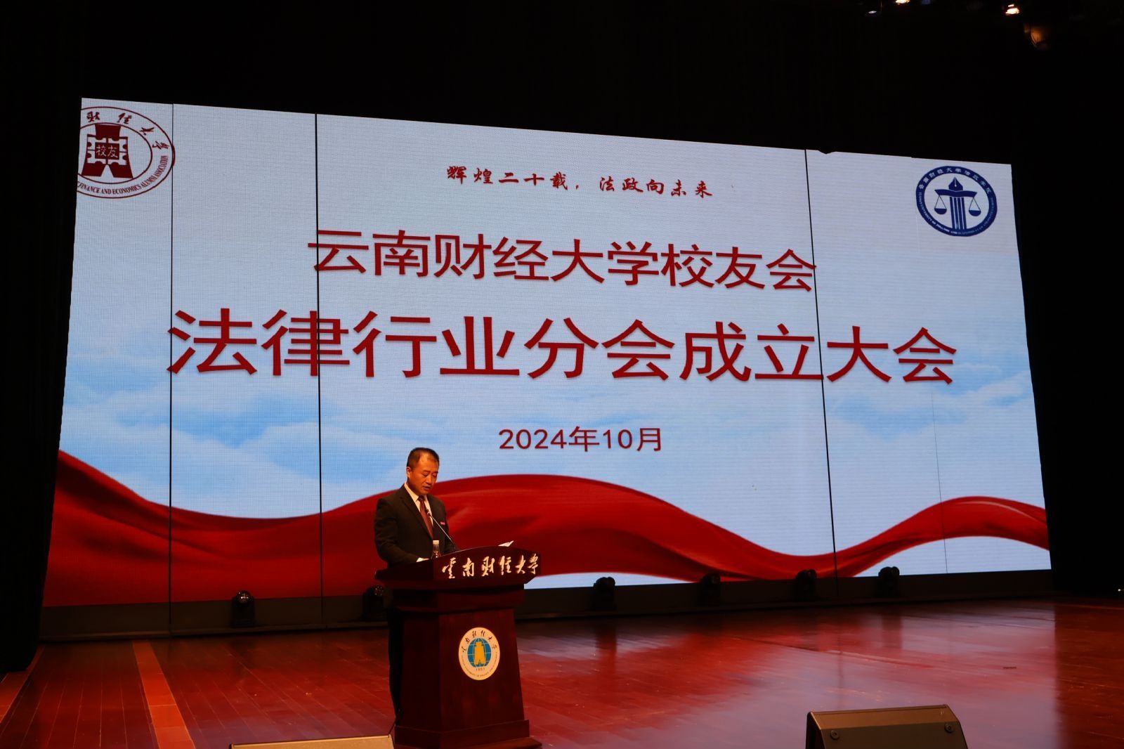 业光远代表学校致辞。他指出,法律行业校友分会的成立是法政学院历史上的重要里程碑,是对校友们深情厚谊的回应,更是法政学院精神薪火相传、持续发扬的重要契机。他希望校友分会成为校友们共叙友情、分享经验、合作共赢的重要载体,希望 校友积极支持和关心学校和学院的建设发展,祝愿法律行业校友分会越办越好。