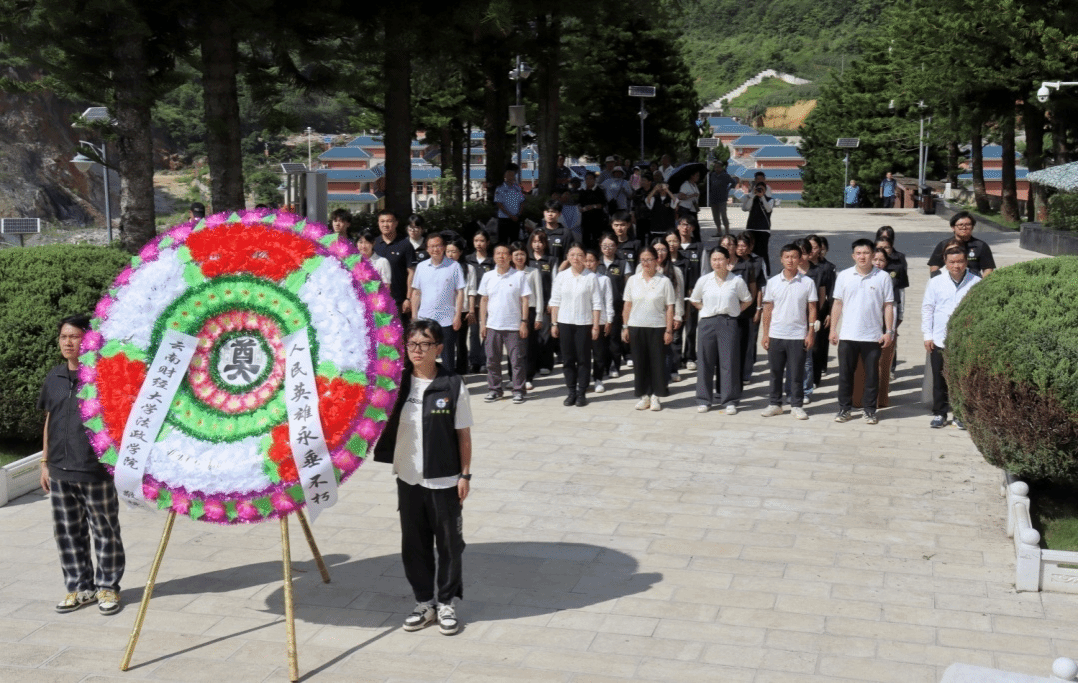 7月16日,为使学院师生进一步了解党领导的人民军队的光辉事迹,强化爱国意识、增强历史使命感、责任感,法政学院党委组织教师党员到老山、天保口岸、麻栗坡烈士陵园开展爱国主义主题党日活动。党委书记李姗姗、副书记张吟竹及20名教师党员参加。