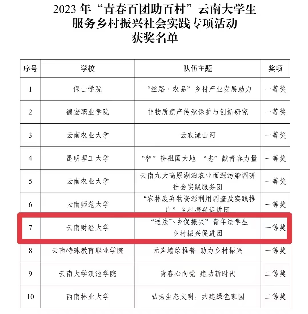法政学院“送法下乡促振兴”青年法学生乡村振兴促进团将继续在党委领导下,团委指导下,加强思想建设,提高专业水平,增强服务能力,用自己的所学专业不断服务群众,奉献社会,不断为法治中国建设贡献云财法政力量!