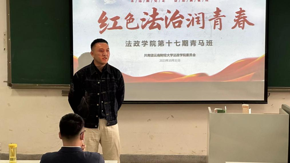 为提高师生的法治意识,促进红色基因传承,践行社会主义核心价值。法政学院团委于2023年11月7日在北苑卓阶楼219召开法政青春讲坛-“红色法治基因”主题宣讲活动。院团委书记李浩老师、云南同润律师事务所邱万斌律师和法政学院部分学生参与活动。