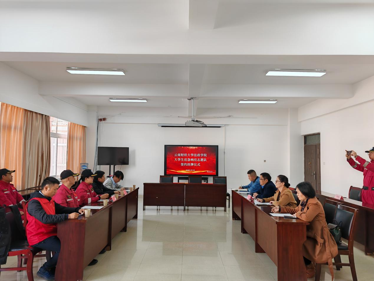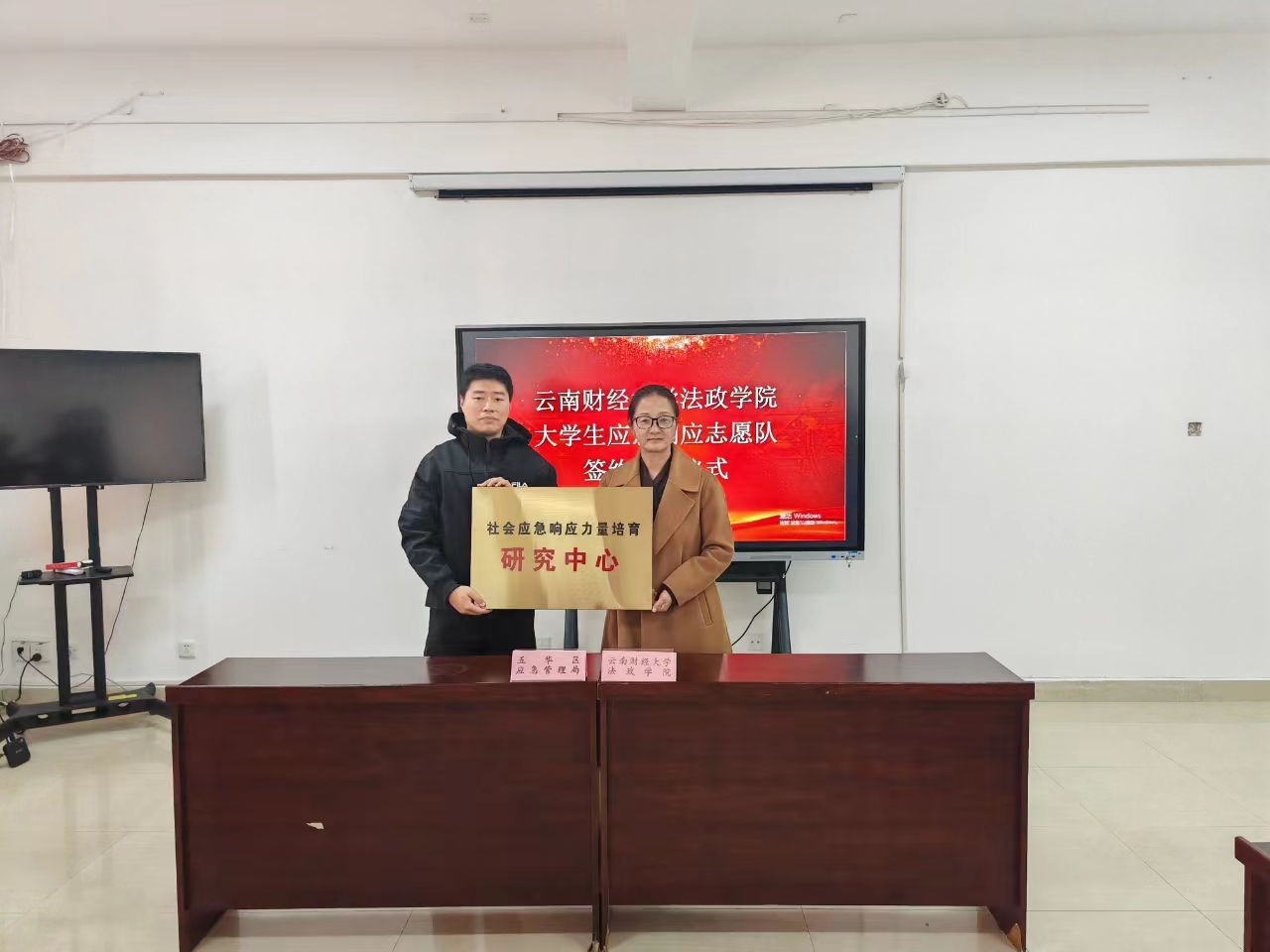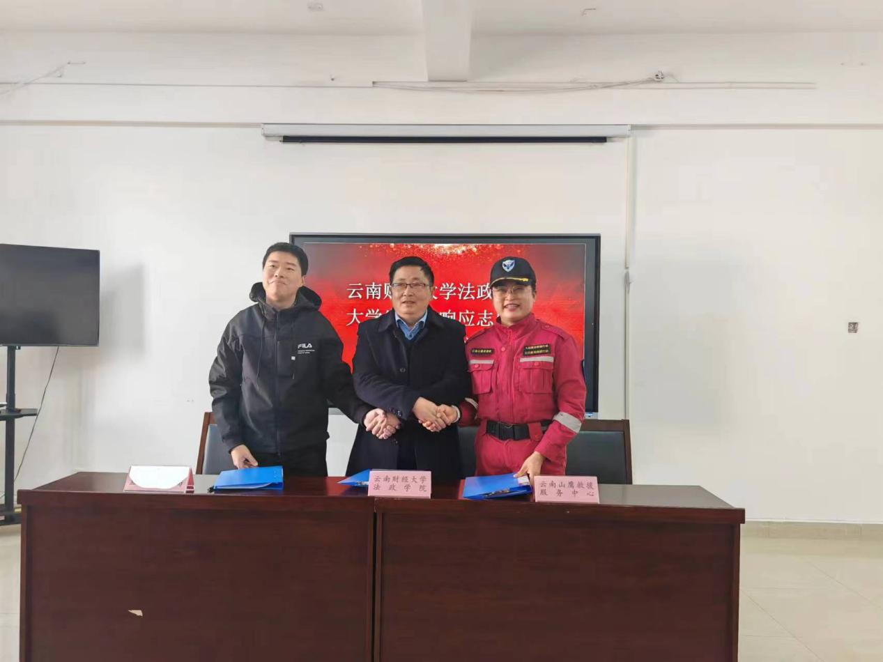 12月13日,法政学院与昆明市五华区应急管理局、云南山鹰救援服务中心签订建立大学生应急响应志愿队三方协议,并举行“社会应急响应力量培育研究中心”签约挂牌仪式。法政学院院长石现明、党委副书记张吟竹参加签约仪式,昆明市五华区应急管理局副局长胡波、云南山鹰救援服务中心主任杨磬参加活动。