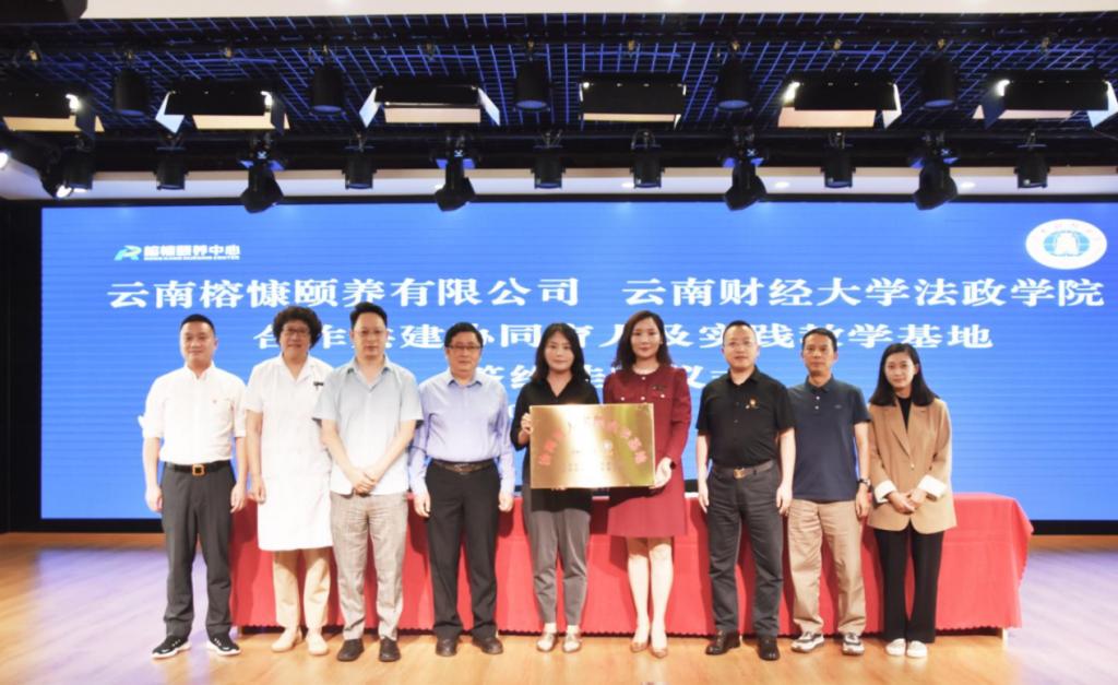 2023年7月11日,法政学院党委书记李姗姗、院长石现明一行4人到云南榕慷颐养有限公司开展访企拓岗暨实践教学基地挂牌仪式。