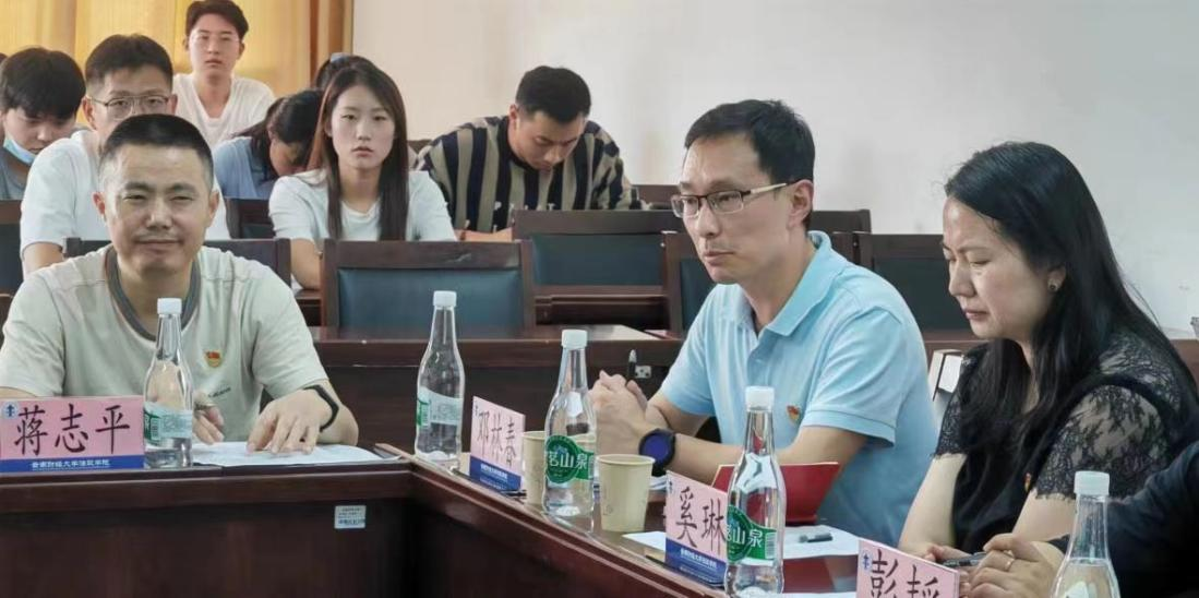 为进一步深入推进学习贯彻习近平新时代中国特色社会主义思想主题教育,全面贯彻党的教育方针,落实立德树人根本任务,推进法政学院协同育人工作深入开展,6月16日,法政学院师生党支部与昆明市中级人民法院立案二庭党支部开展“党建引领,协同育人”主题教育联学联建活动。立案二庭庭长(支部书记)彭韬,副书记奚琳,副庭长熊梓旭,法官邓林春、李莹和三名法官助理,法政学院党委书记李姗姗、副院长马慧娟、教职工党支部书记屈舒阳和师生党员代表40余人参加活动。