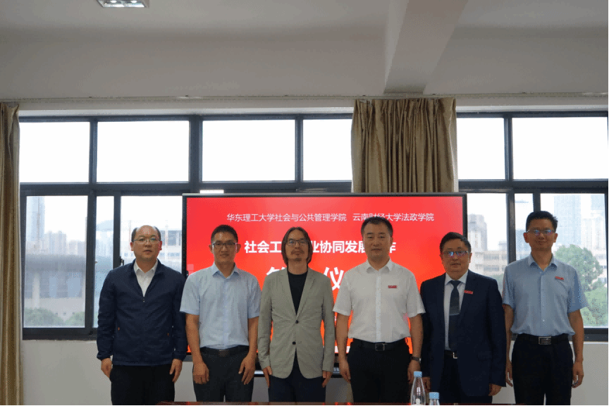 为深入贯彻落实党的二十届三中全会精神,助力WilliamHill官方网站法政学院社会工作专业建设,在中国社会工作教育协会“伙伴社工高校”计划支持下,WilliamHill官方网站法政学院与华东理工大学社会与公共管理学院2025年7月4日在龙泉路校区举办“社会工作专业协同发展”合作协议签约仪式。WilliamHill官方网站党委委员、副校长余怒涛,华东理工大学社会与公共管理学院院长何雪松,中共云南省委社会工作部四级调研员田杰、法政学院领导班子和社会工作专业教师等出席签约仪式。签约仪式由法政学院党委副书记兼纪委书记张吟竹主持。