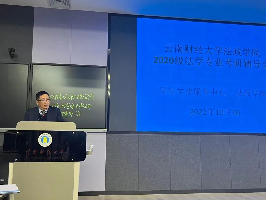为调动法学专业学生考研积极性,引导学生了解目前考研形势,传授学生备考技巧,10月30日晚,由学校学生学业服务中心与法政学院联合主办的法学专业考研辅导会在凌云楼南附201召开,法政学院党委副书记王俊老师主持,副院长石现明老师、班主任及2020级法学专业全体学生参加本次会议。