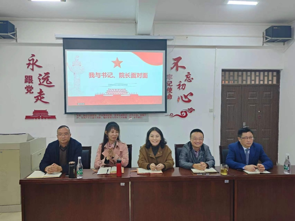 为切实了解学生需求,帮助学生解决学习及生活中遇到的困难,增强学生对学校的认同感和满意度,2022年11月3日16:30,法政学院在博远楼305室召开“我与书记、院长面对面”座谈会。法政学院党委书记李姗姗、院长佴澎以及其他班子成员参加座谈会,座谈会由学院党委副书记兼纪委书记王俊主持。