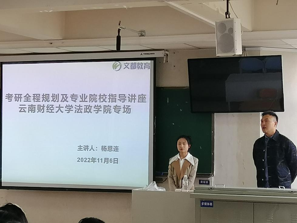 为加强学生们对考研知识的了解,增强考研的信心,提高考研成功率,法政学院团委于2022年11月6在WilliamHill官方网站北院卓远楼521开展考研指导交流会。本次考研交流会邀请了法政学院团委书记李浩老师,文都考研WilliamHill官方网站校区分校长杨恩连老师作为主讲老师,法政学院20级国际事务与国际关系专业和政治学专业全体参加交流会。