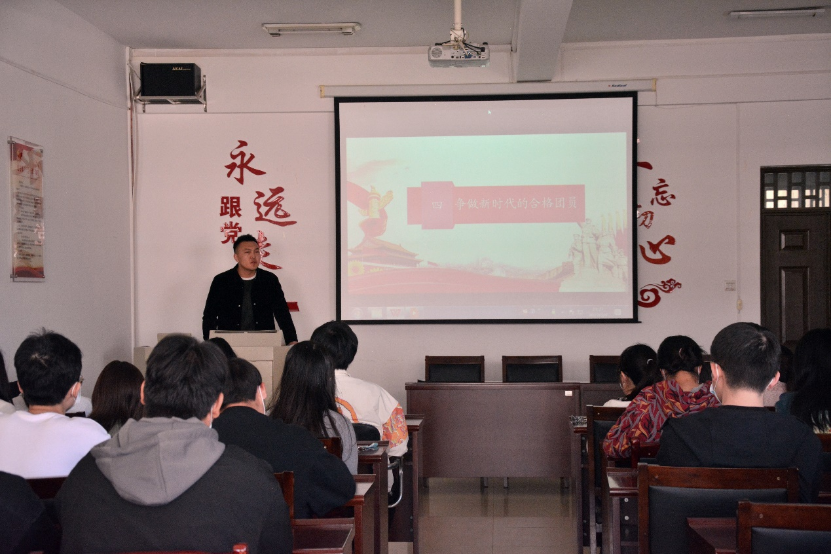 学生骨干段文其介绍了青马班培养特色、培训方案、奖惩制度,宣读了新学员名单并宣布开班。李浩老师作为第一期主题团课培训的主讲人,以“争做新时代的合格团员”为主题,向同学们强调了成为一名新时代合格团员的重要性,鼓励同学们坚持将所学、所想转化为服务人民、奉献社会的能力,他表示新时代的大学生们应该在中国共产党的领导下不断前进,同学们应该坚定理想信念,从严要求自己。