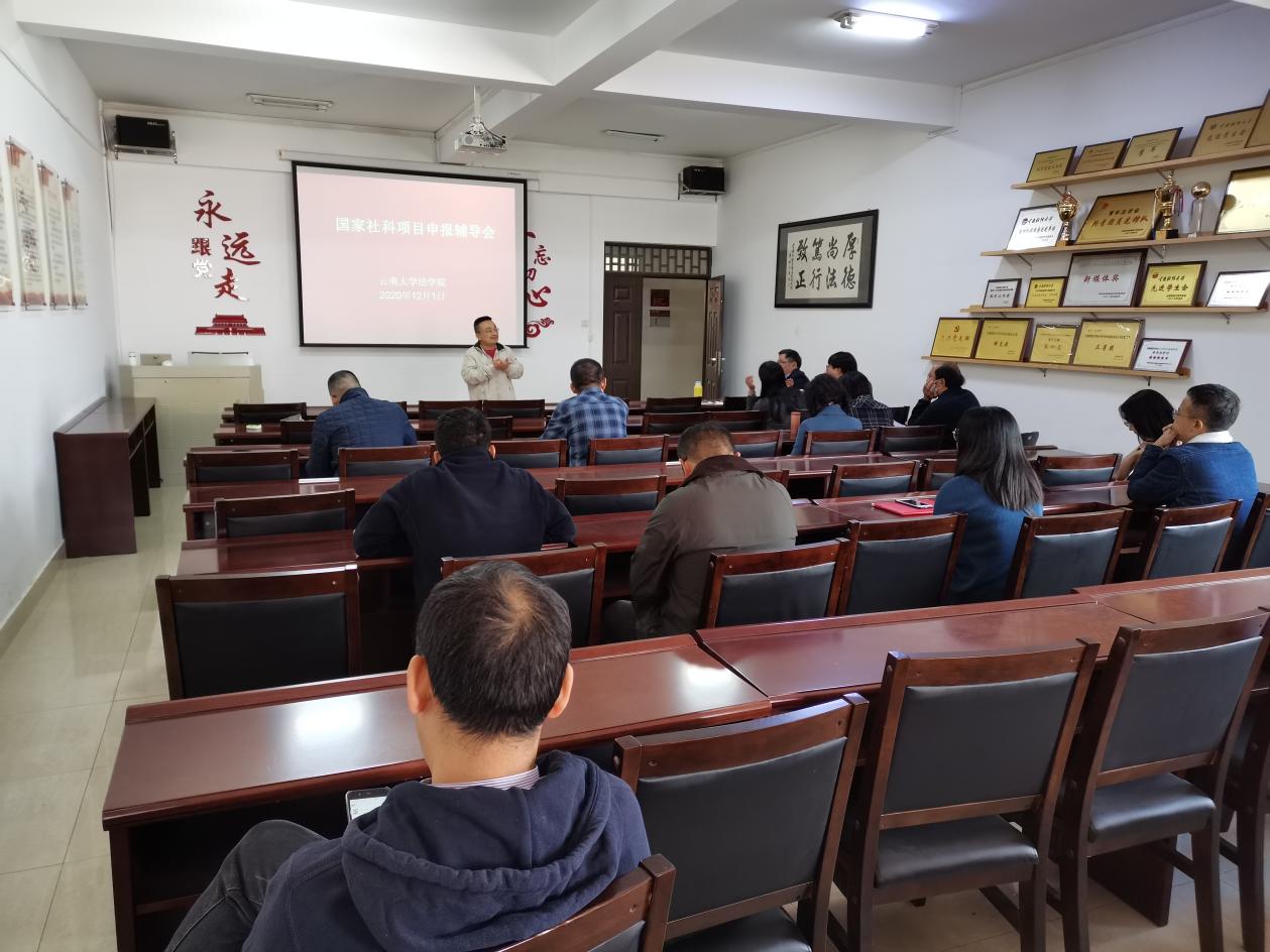 2020年12月1日下午2:30,法学院在博远楼三楼305会议室召开2021年度国家社科基金申报辅导会,本次辅导讲座由法学院院长佴澎主持。
