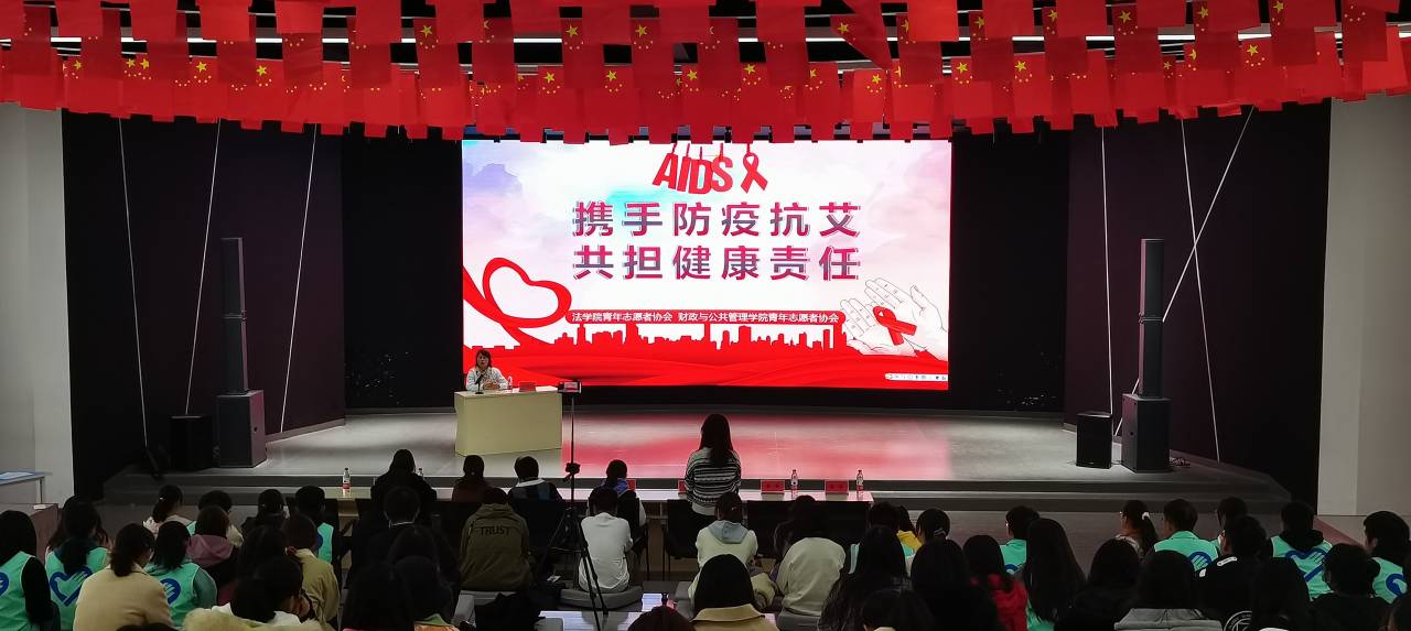 11月30日,世界艾滋病日来临之际,为了宣传和预防艾滋病,法学院和财政与公共管理学院青年志愿者协会联合举办活动,邀请甘美医院尹梅花医生在路演大厅开展艾滋知识科普专题讲座。