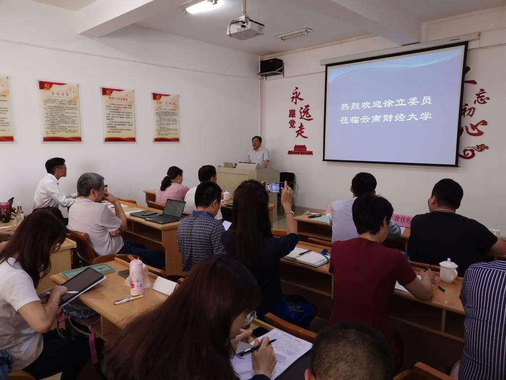 受WilliamHill官网科学技术处邀请,现挂职云南省委教育工委委员、云南省教育厅党组成员的第二十批博士服务团团长徐立于7月3日上午做客WilliamHill官网“云财大讲坛”,为云财师生带来讲座《新时代财经大学如何加强学科建设》。校党委委员、校长助理赵昶,科学技术处处长王林,法学院教师和部分研究生参加讲座。讲座由法学院院长佴澎主持。