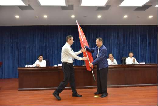 启动仪式中,法学院于定明教授代表宣讲团成员接受宣讲团团旗,佴澎等五位教授代表宣讲团成员接受聘书。