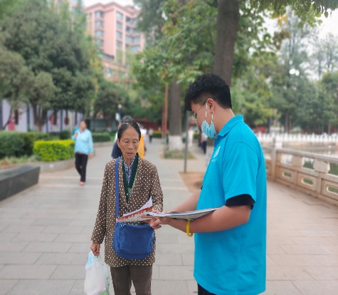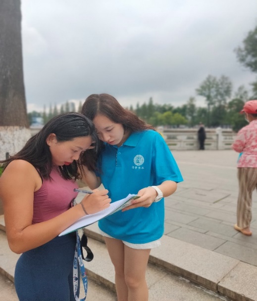 经过前两天的锻炼,“三下乡”实践队的队员们都积累了很多宣传的经验。他们两两分组,各自往不同方向出发并以翠湖为中心开始进行宣传。而其中王帅同学与第一天相比进步很大,在进行传单宣发以及问卷调查时得心应手。在宣传活动结束总结时,发放的传单问卷数是所有法学院同学中最多的。