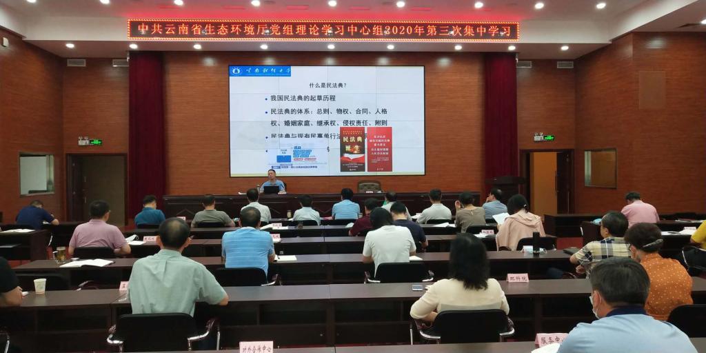 6月30日下午,云南省生态环境厅党组举行2020年理论学习中心组第三次集中学习,专题学习新颁布的《中华人民共和国民法典》。WilliamHill官方网站法学院于定明教授应邀作了专题辅导授课。厅领导、机关各处室主要负责人、直属各单位党政主要领导等参加学习。