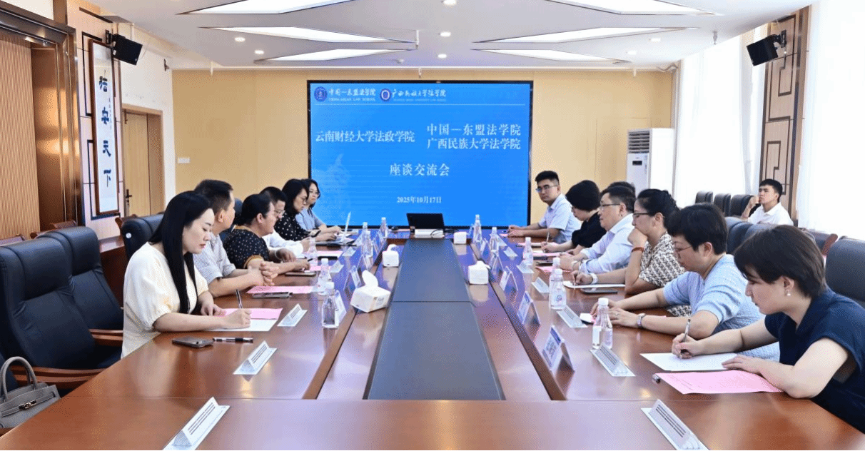 为提升东盟领域涉外法治人才培养管理、学院党建及学生管理等方面工作水平,深度借鉴先进经验与培养模式,10月17日上午,法政学院院长石现明一行赴广西民族大学法学院(中国—东盟法学院)开展调研交流。广西民族大学法学院党委书记蒋慧,中国—东盟法学院常务副院长、广西民族大学法学院院长陈星,广西民族大学法学院副院长彭振等教师代表出席座谈。