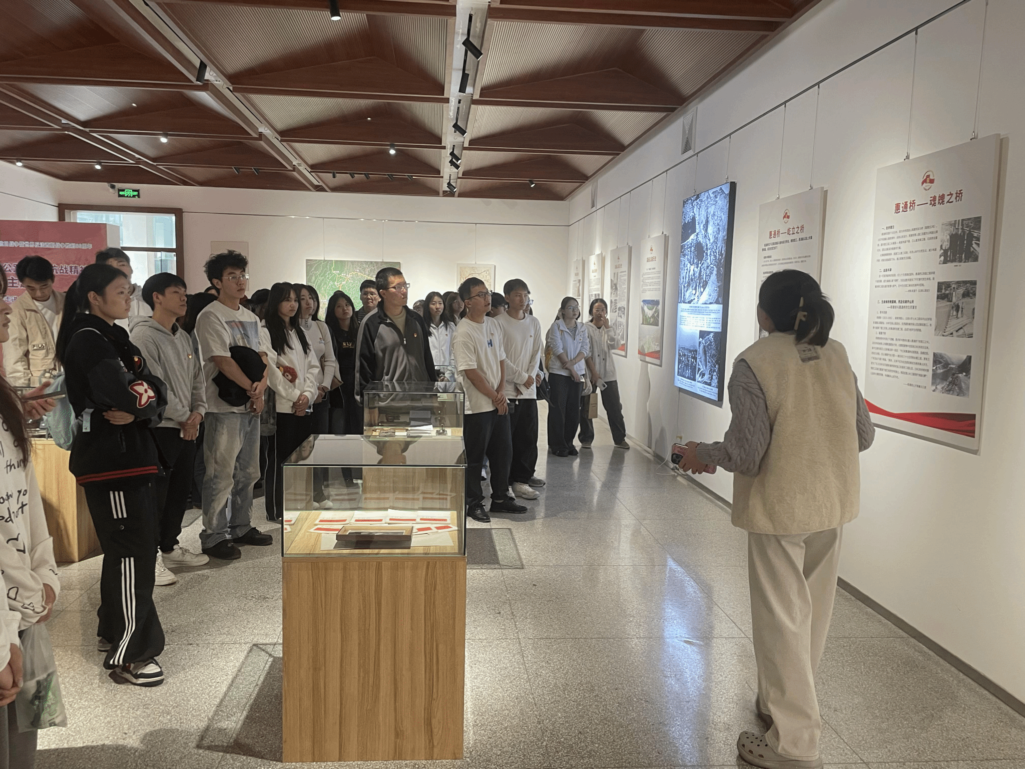 本次展览聚焦于抗战时期的重要“生命线”——滇缅公路,通过丰富的历史照片、实物展品与影像资料,系统呈现了1937至1945年间,数十万民众在极端艰苦的环境中肩挑手凿、修筑公路的壮举,以及这条战略通道世界反法西斯战争中的特殊贡献。观展期间,支部成员认真聆听讲解,深入了解滇缅公路的修建过程、关键历史人物及“惠通桥战役”等重要场景。深切感受抗战时中华民族“不屈不挠、众志成城”的精神内核。