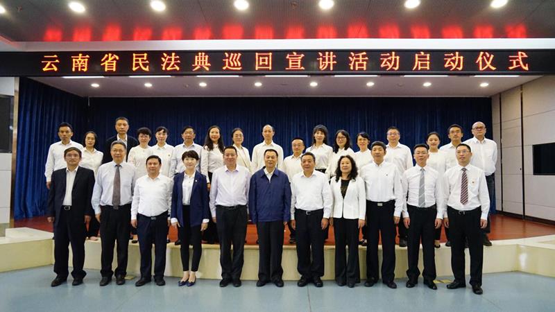 8月17日,“云南省民法典巡回宣讲活动”在昆明举行启动仪式,将我省《民法典》宣讲活动推向高潮。省委常委、省政法委书记、省委依法治省办主任、省法学会会长张太原出席启动仪式,为巡回宣讲团授旗、颁发聘书并讲话。宣讲团成员共计30人,佴澎教授、马慧娟教授、于定明教授、王宏军教授、栾敏副教授入选讲师团。启动仪式中,法学院于定明教授代表宣讲团成员接受宣讲团团旗,佴澎等五位教授代表宣讲团成员接受聘书。法学院教师将与宣讲团的其他成员分赴各州市进行《民法典》宣讲活动。