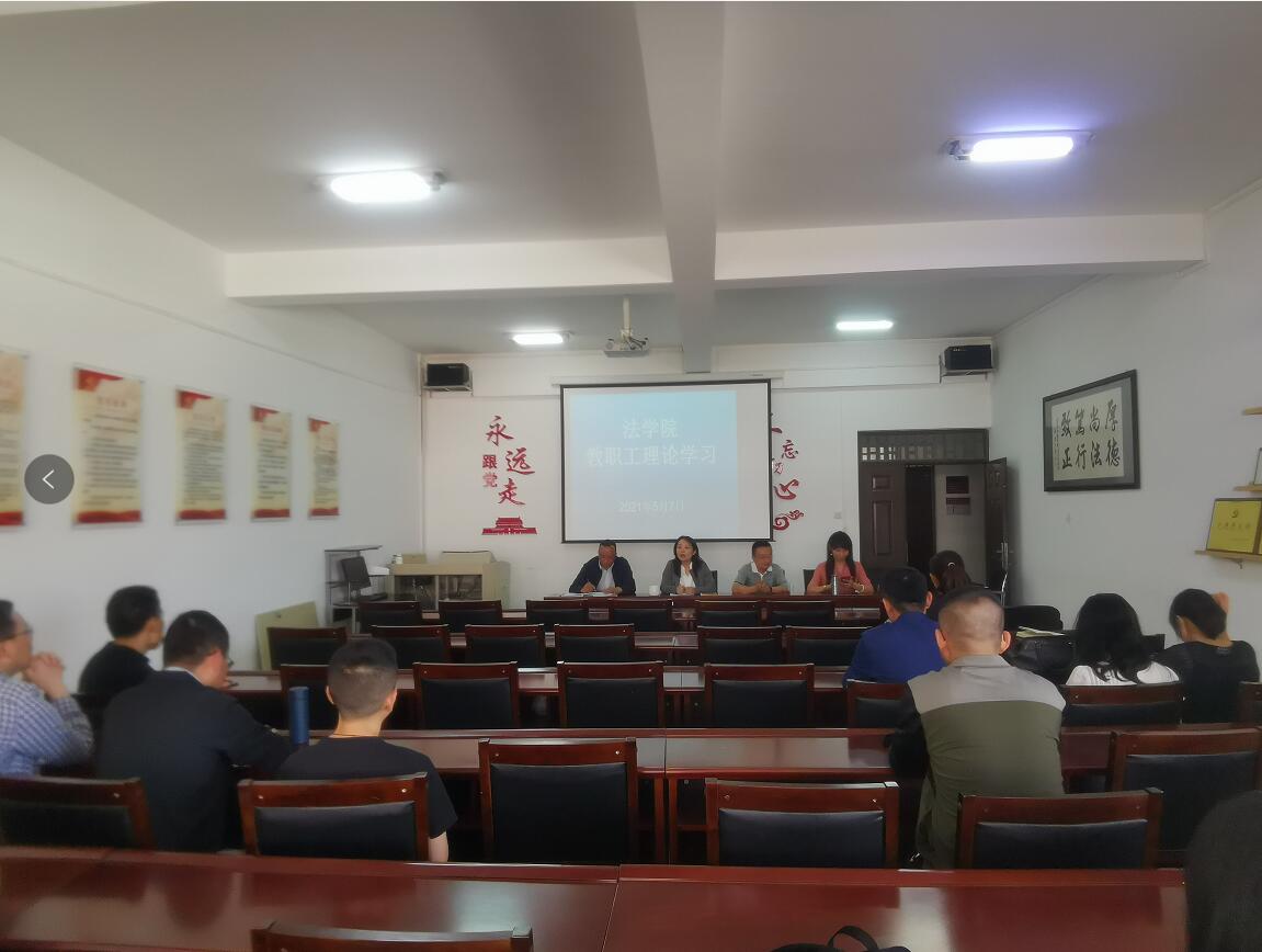 5月7日,法学院组织开展教职工理论学习,学习会由学院党委书记李姗姗、党委副书记兼纪委书记王俊作专题领学,学院全体教职工参加学习。