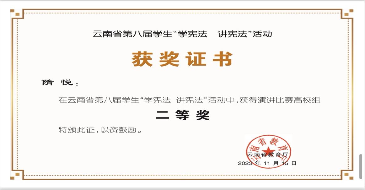 WilliamHill官网被评为优秀组织奖,法政学院李浩老师获得演讲比赛和知识竞赛高校组指导老师二等奖,法政学院张景程同学获得素养竞赛高校组二等奖,法政学院隋悦同学获得演讲比赛高校组二等奖。