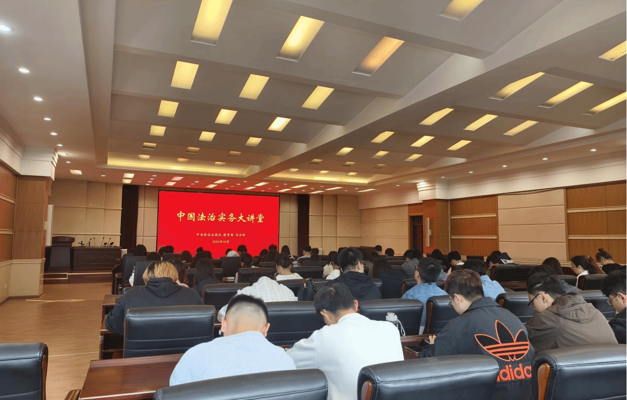 为深入学习贯彻习近平法治思想,贯彻落实党的二十大和二十届三中全会精神,进一步提高法学教育教学质量,培养更多优秀法治人才,在学校教务处组织下,法政学院师生于10月17日在致远楼415会议室参加了教育部高等教育司主办的“中国法治实务大讲堂”启动仪式暨第一讲讲座。