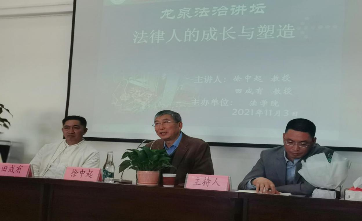 2021年11月3日下午,法学院“龙泉法治讲坛”在博远楼403会议室成功举办主题为《法律人的成长与塑造》的首场讲座。