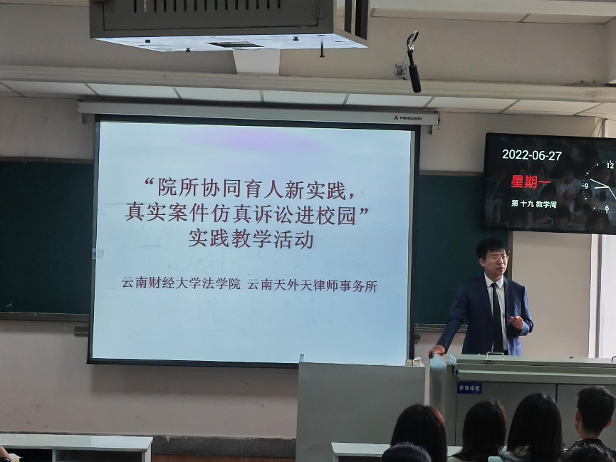 为深入学习贯彻习近平法治思想,培养德才兼备的卓越法治人才,提升学生实践实务能力,WilliamHill官方网站法学院大胆探索创新,在全国首创开展基于真实案件原始卷宗材料的个案全程仿真诉讼实践教学,取得了良好的教学效果。为增强对抗性和实战性,进一步提升仿真诉讼教学质效,法学院联合云南天外天律师事务所在2021-2022学年夏季小学期开展为期四周的“院所协同育人新实践,真实案件仿真诉讼进校园”系列实践教学活动。