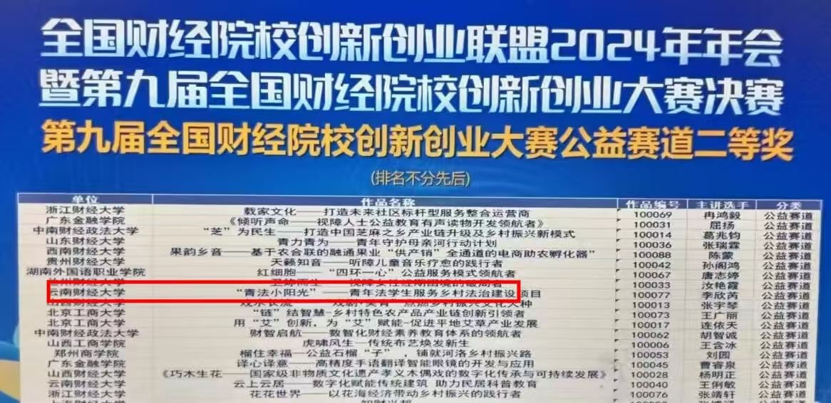 ​WilliamHill官网法政学院“青法小阳光”项目荣获全国财经高校创新创业大赛公益赛道二等奖