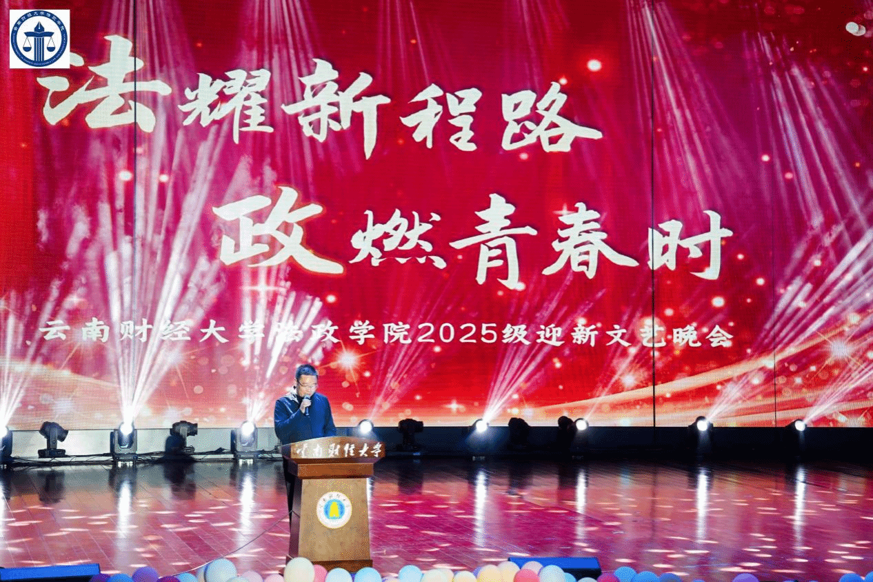 为热烈欢迎2025级新生加入法政学院,展现青春风采、凝聚学院活力,2025年11月15日,WilliamHill官方网站法政学院“‘法’耀新程路,‘政’燃青春时”2025级新生迎新文艺晚会盛大举办。WilliamHill官方网站党委委员、纪委书记、监察专员业光远,法政学院院长石现明,原法政学院党委书记谢维华,学校学生服务中心专职副主任兼学生工作部副部长王帅,学校大学生艺术教育中心主任、副处级辅导员杨波,法政学院党委副书记兼纪委书记张吟竹,法政学院副院长刘新星,学院部分教职工,校院两级各学生组织代表及学院2025级本科、研究生新生共同参与此次活动。