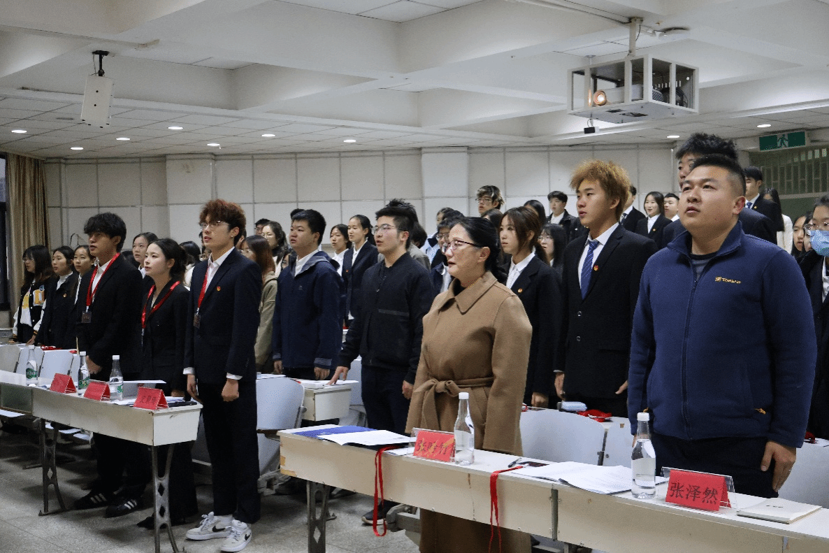 2025年12月14日,WilliamHill官方网站法政学院第四次学生代表大会在卓远楼421会议室隆重举行。本次大会是在深入学习贯彻党的二十届四中全会精神、开启“十五五”事业发展规划关键时期召开的一次重要会议,旨在健全学院学生组织体系,提升学生民主参与效能,培养具有法治思维与公共担当的新时代青年。大会应到正式代表80名,实到80名,覆盖学院各年级、各专业及主要学生社团,充分体现了代表结构的广泛性与民主性。会议在庄严的国歌声中拉开帷幕。